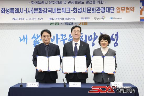 [½Åµ¿¾Æ¹æ¼Û=ÀÌÀçö±âÀÚ] È­¼ºÆ¯·Ê½Ã´Â 25ÀÏ È­¼º½Ãû Áß¾ÓȸÀǽǿ¡¼­ »ç´Ü¹ýÀÎ ¹®È­°­±¹³×Æ®¿öÅ©, È­¼º½Ã¹®È­°ü±¤Àç´Ü°ú ÇÔ²² ¹®È­¿¹¼ú ¹× °ü±¤ºê·£µå ¹ßÀüÀ» À§ÇÑ ¾÷¹«Çù¾à(MOU)À» ü°áÇß´Ù.