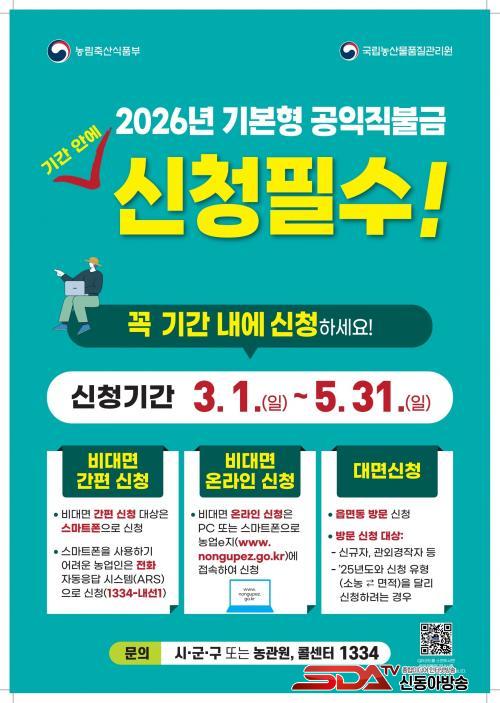 ºñ´ë¸é °£Æí½Åû ´ë»óÀÚ´Â Áö³ÇØ °øÀÍÁ÷ºÒ±Ý µî·ÏÁ¤º¸¿Í ¿ÃÇØ ³ó¾÷°æ¿µÃ¼ µî·Ï Á¤º¸¿¡ º¯µ¿ÀÌ ¾ø´Â ³ó¾÷ÀÎÀÌ´Ù. ÇØ´ç ³ó¾÷Àο¡°Ô´Â ³ó¸²Ãà»ê½ÄǰºÎ¿¡¼ ½º¸¶Æ®ÆùÀ» ÅëÇØ ¹®ÀÚ·Î »çÀü ¾È³»ÇÒ ¿¹Á¤ÀÌ´Ù.