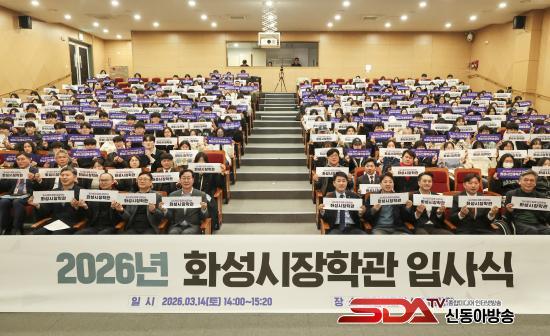 [½Åµ¿¾Æ¹æ¼Û=ÀÌÀçö±âÀÚ] È­¼ºÆ¯·Ê½Ã°¡ 14ÀÏ µ¿Åº´Ù¿øÀÌÀ½ÅÍ¿¡¼­ ¡®2026³â È­¼º½Ã ÀåÇаü ÀÔ»ç½Ä¡¯À» °³ÃÖÇß´Ù. À̹ø Çà»ç´Â È­¼º½ÃÀåÇаü ½Å±Ô ÀÔ»ç»ýµéÀÇ »õ·Î¿î Ãâ¹ßÀ» ÃàÇÏÇϰí ÀåÇаü ¿î¿µ°ú Áö¿ø ÇÁ·Î±×·¥À» ¼Ò°³Çϱâ À§ÇØ ¸¶·ÃµÆ´Ù.