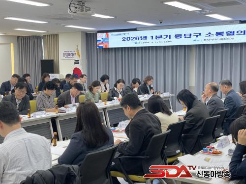 µ¿Åº±¸´Â 1ÀÏ µ¿Åº±¸Ã»¿¡¼ ±¸Ã»Àå, µ¿Åº1µ¿ºÎÅÍ 9µ¿±îÁö ÁÖ¿ä »çȸ´ÜüÀå, °ü°è °ø¹«¿øÀÌ Âü¼®ÇÑ °¡¿îµ¥ ¡®2026³â 1ºÐ±â µ¿Åº±¸ ¼ÒÅëÇùÀÇȸ¡¯¸¦ ¿°í Áö¿ª»çȸ¿ÍÀÇ Çù·Â °È ¹æ¾ÈÀ» ³íÀÇÇß´Ù.