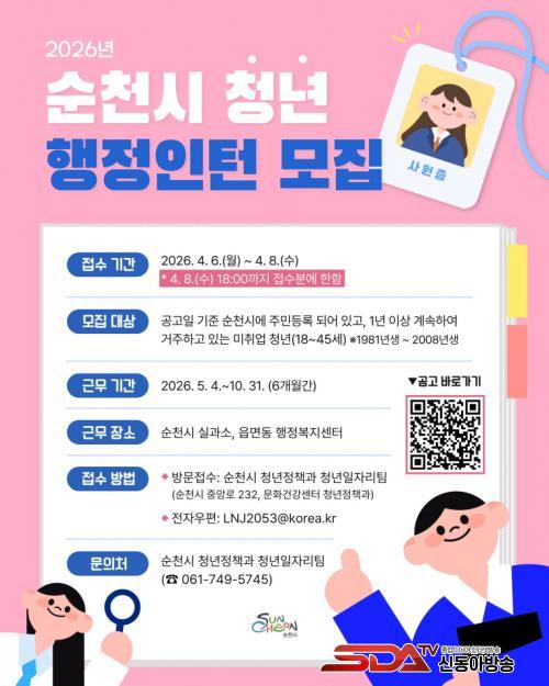 [½Åµ¿¾Æ¹æ¼Û ¼øÃµ=±è¿ëÈÆ ±âÀÚ] ¼øÃµ½Ã´Â Áö¿ª û³âµéÀÇ Áø·Î ¼³°è¿¡ µµ¿òÀ» ÁÖ°í Ãë¾÷ °æÀï·ÂÀ» Ű¿ì´Â ½Ç¹« °æÇèÀ» Á¦°øÇϱâ À§ÇØ ¡®2026³â ¼øÃµ½Ã û³â ÇàÁ¤ÀÎÅÏ¡¯À» ¿î¿µÇÑ´Ù°í ¹àÇû´Ù.