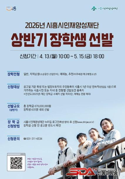 [½Åµ¿¾Æ¹æ¼Û ½ÃÈï½Ã=À̽ŵ¿±âÀÚ] (Àç)½ÃÈï½ÃÀÎÀç¾ç¼ºÀç´ÜÀº Áö¿ª ÀÎÀç ¾ç¼º°ú ±³À° ±âȸ È®´ë¸¦ À§ÇØ ¡®2026³â »ó¹Ý±â ÀåÇлý¡¯À» 635¸í ³»¿Ü·Î ¼±¹ßÇÑ´Ù. ÀåÇÐ±Ý ±Ô¸ð´Â ÃÑ 6¾ï 7õ¸¸ ¿øÀÌ´Ù.