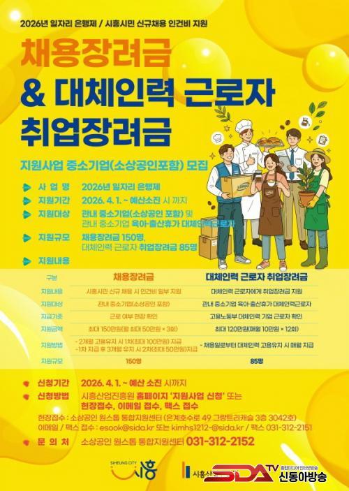 ¡®ÀÏÀÚ¸® ÀºÇàÁ¦¡¯´Â °ü³» ±â¾÷ÀÇ Àη³°ú ±¸Á÷ÀÚÀÇ Ãë¾÷³À» µ¿½Ã¿¡ ÇØ°áÇϱâ À§ÇØ 2020³âºÎÅÍ ÃßÁøÇØ ¿Â ½ÃÈï½ÃÀÇ Æ¯ÈµÈ °í¿ë Áö¿ø»ç¾÷À¸·Î ¡ãä¿ë Àå·Á±Ý ¡ã´ëü Àη ±Ù·ÎÀÚ Ãë¾÷Àå·Á±Ý µî µÎ °¡Áö·Î ¿î¿µµÈ´Ù.