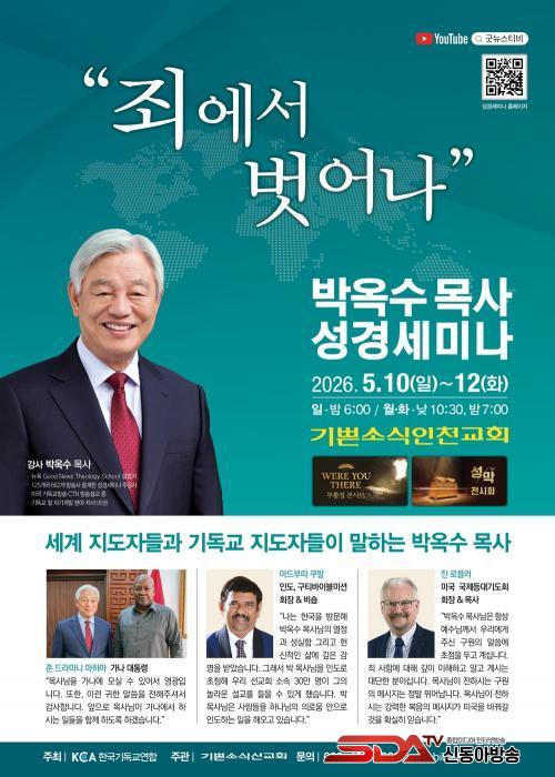 Çѱ¹±âµ¶±³¿¬ÇÕÀÌ ÁÖÃÖÇÏ°í ±â»Û¼Ò½Ä¼±±³È¸ ÁÖ°üÀ¸·Î ¿­¸®´Â À̹ø ¼º°æ¼¼¹Ì³ªÀÇ ÁÖ°­»ç´Â ±â»Û¼Ò½Ä°­³²±³È¸ ¹Ú¿Á¼ö ¸ñ»ç´Ù. ±×´Â ¡®ÁË¿¡¼­ ¹þ¾î³ª¡¯¸¦ ÁÖÁ¦·Î, »ç¶÷µé¿¡°Ô Á˰¡ ¾î¶»°Ô ¾Ä¾îÁö´ÂÁö ¼³¸íÇϰí, ¼º°æÀÌ ¸»ÇÏ´Â ÂüµÈ ½Å¾ÓÀÌ ¹«¾ùÀÎÁö °­¿¬ÇÒ ¿¹Á¤ÀÌ´Ù. ¸Å °­¿¬ Àü¿¡´Â °¢±¹¿¡¼­ Âü°¡ÇÑ ¸ñȸÀÚµéÀÇ ±âµµ¿Í °£Áõ, ±×¶ó½Ã¾Æ½ºÇÕâ´ÜÀÇ Âù¾çÀÌ ÀÖ°í, °­¿¬ ÈÄ¿¡´Â ½Å¾Ó »ó´ãµµ °¡´ÉÇÏ´Ù.
