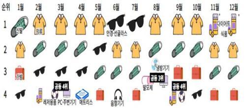 ¶ÇÇÑ, ¿ùº°·Î ÇÇÇØ°¡ ´Ù¹ßÇϴ ǰ¸ñÀ» ºÐ¼®Çغ¸´Ï ¡®ÀÇ·ù¡¯°¡ 2¿ù¿¡¼ 5¿ù, 8¿ù¿¡¼ 10¿ù¿¡ 1¼øÀ§¸¦ Â÷ÁöÇßÀ¸¸ç, 1¿ùÀº ¡®½Å¹ß¡¯, 6¿ù°ú 7¿ù¿¡´Â ¡®¾È°æ‧¼±±Û¶ó½º¡¯, 11¿ù°ú 12¿ù¿¡´Â ¡®´ÙÀÌ¾îÆ® ½Äǰ¡¯ÀÌ 1¼øÀ§¸¦ Â÷ÁöÇØ ¿ùº° ÁÖ¿ä ÇÇÇØ ǰ¸ñ¿¡ Â÷À̰¡ ÀÖ¾ú´Ù.