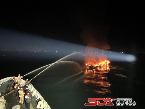 ÇØ°æÀº °æºñÇÔÁ¤ µµÂø ÈÄ ¾î¼± ¼±Ã¼ Àüü·Î ºÒ±æÀÌ È®»ê ÁßÀÎ °ÍÀ» È®ÀÎ ÈÄ ¼Òȼö¸¦ ÀÌ¿ëÇØ ¼ÒÈ ÀÛ¾÷À» ÁøÇàÇϰí ÀÖÁö¸¸ ºÒ±æÀÌ °Å¼¼ ¾î·Á¿òÀ» °Þ°í ÀÖ´Ù.