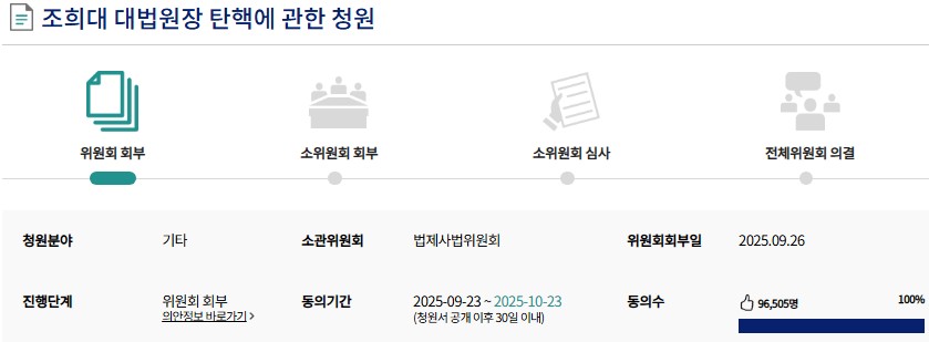 ÇÑÆí, ´ëÇѹα¹ Çå¹ý Á¦65Á¶ 1Ç× "¨ç´ëÅë·É¡¤±¹¹«ÃѸ®¡¤±¹¹«À§¿ø¡¤ÇàÁ¤°¢ºÎÀÇ À塤Çå¹ýÀçÆÇ¼Ò ÀçÆÇ°ü¡¤¹ý°ü¡¤Áß¾Ó¼±°Å°ü¸®À§¿øÈ¸ À§¿ø¡¤°¨»ç¿øÀ塤°¨»çÀ§¿ø ±âŸ ¹ý·üÀÌ Á¤ÇÑ °ø¹«¿øÀÌ ±× Á÷¹«ÁýÇà¿¡ ÀÖ¾î¼ Çå¹ýÀ̳ª ¹ý·üÀ» À§¹èÇÑ ¶§¿¡´Â ±¹È¸´Â źÇÙÀÇ ¼ÒÃ߸¦ ÀǰáÇÒ ¼ö ÀÖ´Ù."¿¡ ±Ù°ÅÇØ¼ ¿Ã¶ó¿Â Á¶Èñ´ë źÇ٠û¿øÀÌ ¿À´Ã ¿ÀÀü 10½Ã ÇöÀç 9¸¸6õ¸íÀ» µ¹ÆÄ, 10¸¸À» ´« ¾Õ¿¡ µÎ°í ÀÖ¾î, ±¹È¸´Â ¾î¶² ½ÄÀ¸·Î µç ´äÀ» ÇØ¾ß ÇÒ °ÍÀ¸·Î º¸ÀδÙ.