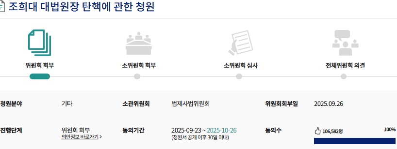 ÇÑÆí, Áö³ 23ÀÏ ¿Ã¶ó¿Â Á¶Èñ´ë źÇÙ¿¡ °üÇÑ Ã»¿øÀÌ 10¸¸ ¸íÀ» µ¹ÆÄÇÏ¸é¼ ±¹È¸´Â ¾î¶² ½ÄÀ¸·Î µç ´äÀ» ÇØ¾ß ÇÒ °ÍÀ¸·Î º¸ÀδÙ.