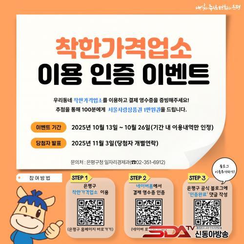 ƯÈ÷ À̺¥Æ® Âü¿©ÀÚ Áß Ãß÷À» ÅëÇØ 100¸í¿¡°Ô ¼¿ï»ç¶û»óǰ±Ç 1¸¸ ¿øÀ» ÁõÁ¤ÇÑ´Ù. ÀÚ¼¼ÇÑ ³»¿ëÀº ÀºÆò±¸Ã» ´©¸®Áý°ú °ø½Ä ºí·Î±×¿¡¼ È®ÀÎÇÒ ¼ö ÀÖ´Ù.