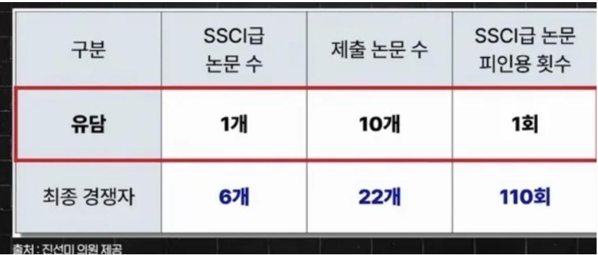 Áø ÀÇ¿øÀº ¡°Ã¤¿ëµÈ (À¯´ã) ±³¼ö¿Í Áö¿øÀÚ ÇзÂÀ» ºñ±³ÇßÀ» ¶§ 11¸íÀº ´Ù¸¥ Á¡ÀÌ ¾ø´Âµ¥ 3¸í¸¸ 1µî±Þ ¸¸Á¡À» ¹Þ¾Ò´Ù¡±, ¡°¹Ú»ç ³í¹®°ú ¶È°°Àº Á¦¸ñÀ¸·Î ³í¹®À» (¿©·¯ °³) ½á¼ (¸¸Á¡) ±âÁØ¿¡ ¸ÂÃè´Ù¡±¸ç, ³í¹®À» Âɰ³´Â ¼ö¹ýÀ¸·Î À¯´ãÀÌ ¸¸Á¡ ¹ÞÀº °Ô ¾Æ´Ï³Ä¸ç,