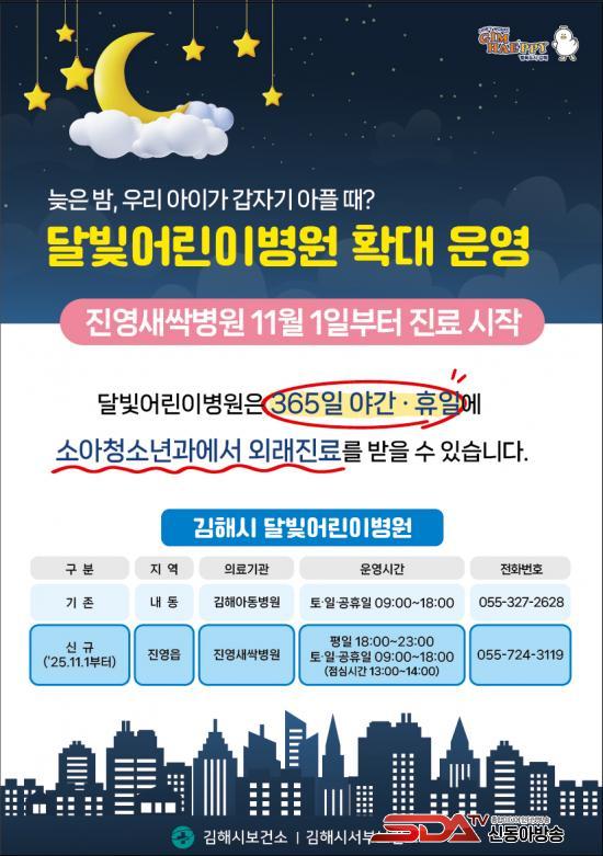 À̹ø È®´ë ¿î¿µÀ¸·Î ±èÇØ½Ã´Â ±âÁ¸ ³»µ¿ ±èÇØ¾Æµ¿º´¿ø(ÁÖ¸»¡¤°øÈÞÀÏ 09:00~18:00)¿¡ ´õÇØ ¼ºÎ±Ç(Áø¿µ»õ½Ïº´¿ø)ÀÇ ÆòÀÏ ¾ß°£(18:00~23:00)°ú ÁÖ¸»¡¤°øÈÞÀÏ Áø·á(09:00~18:00)±îÁö º¸ÀåÇÏ´Â 2°³ ´Þºû¾î¸°À̺´¿ø ü°è¸¦ ±¸ÃàÇß´Ù.