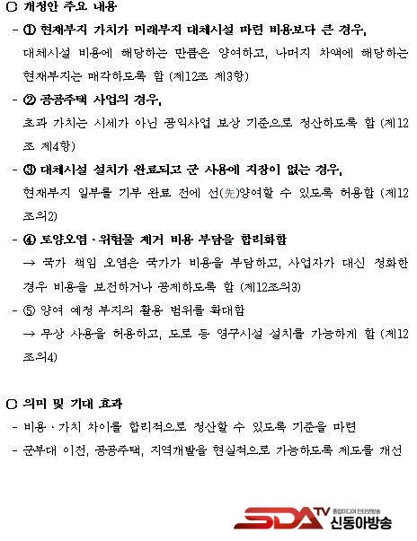 ´õºÒ¾î¹ÎÁÖ´ç ¹Ú¼±¿ø ±¹È¸ÀÇ¿ø(ÀÎõ ºÎÆò±¸À»/±¹¹æÀ§¿øÈ¸)Àº ±º»ç½Ã¼³ ÀÌÀü »ç¾÷À» º¸´Ù ºü¸£°í Çö½ÇÀûÀ¸·Î ÃßÁøÇϱâ À§ÇÑ ¡¸±¹¹æ¡¤±º»ç½Ã¼³ »ç¾÷¿¡ °üÇÑ ¹ý·ü ÀϺΰ³Á¤¹ý·ü¾È¡¹°ú ¡¸±¹À¯Àç»êƯ·ÊÁ¦Çѹý ÀϺΰ³Á¤¹ý·ü¾È¡¹À» ´ëÇ¥¹ßÀÇÇß´Ù.