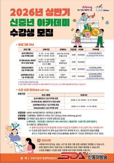 ±³À° ´ë»óÀº 46¼¼~64¼¼ µµºÀ±¸¹ÎÀÌ´Ù. ½ÅûÀº µµºÀ¹è¿òe ´©¸®ÁýÀ¸·Î ÇÏ¸é µÈ´Ù. °¡Àå ¸ÕÀú ¿î¿µµÇ´Â ½Ç³»½Ä¹°°ü¸®»ç 2±Þ ÀÚ°ÝÁõ °úÁ¤ÀÇ °æ¿ì 2¿ù 23ÀϺÎÅÍ ½Åû¹Þ´Â´Ù. ¿À¾ð¼® µµºÀ±¸Ã»ÀåÀº ¡°À̹ø ±³À°°úÁ¤ÀÌ Àçµµ¾à ¹ßÆÇÀÌ µÇ±â¸¦ ¹Ù¶õ´Ù.¡±¶ó¸ç, ¡°½ÅÁß³âÃþÀÇ ¸¹Àº °ü½É°ú Âü¿©¸¦ ¹Ù¶õ´Ù.¡±¶ó°í ¸»Çß´Ù.