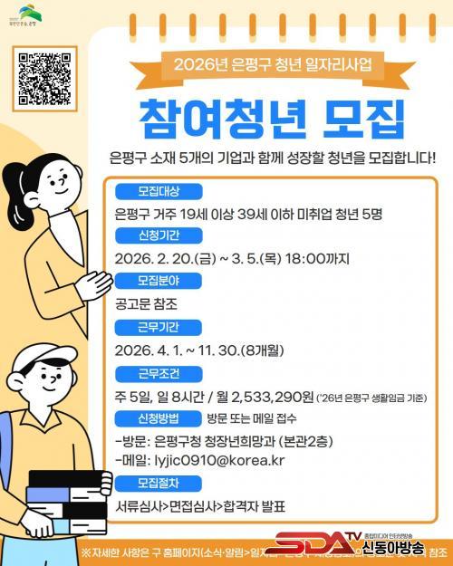 ¼±¹ßµÈ û³âÀº ¿À´Â 4¿ù 1ÀϺÎÅÍ 11¿ù 30ÀϱîÁö 8°³¿ù°£ °ü³» 5°³ ±â¾÷¿¡¼ ±Ù¹«ÇÑ´Ù. 2026³â ÀºÆò±¸ »ýȰÀÓ±ÝÀÎ ¿ù 253¸¸ 3,290¿øÀÇ ±Þ¿©¿Í 4´ë º¸Çè, Ãë¾÷¿ª·® °È ±³À°À» Áö¿ø¹Þ´Â´Ù.