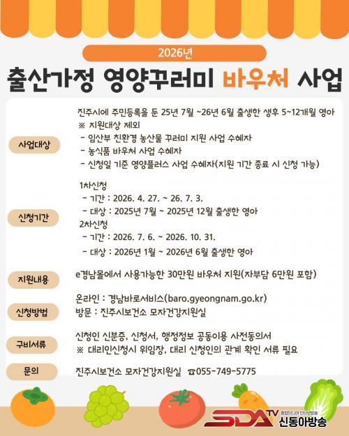À̹ø »ç¾÷Àº ÁøÁֽÿ¡ Áֹεî·Ï»ó ÁÖ¼ÒÁö¸¦ µÐ 2025³â 7¿ùºÎÅÍ 2026³â 6¿ù »çÀÌ Ãâ»ýÇÑ »ýÈÄ 5~12°³¿ù ¿µ¾Æ¸¦ ´ë»óÀ¸·Î Çϸç, ¿µ¾Æ 1Àδç 30¸¸ ¿øÀÇ ¹Ù¿ìó°¡ Áö±ÞµÈ´Ù. ÀÌ °¡¿îµ¥ 6¸¸ ¿øÀÇ ÀںδãÀÌ ¹ß»ýÇÏÁö¸¸, ÁÖ°Å¡¤ÀÇ·á±Þ¿© ¼ö±Þ °¡±¸´Â ÀںδãÀÌ ¸éÁ¦µÈ´Ù.