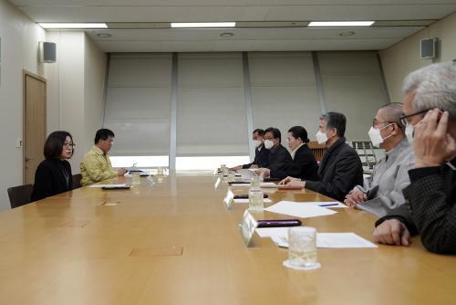[½Åµ¿¾Æ¹æ¼Û=¹Ú´ë¿µ ±âÀÚ] ¼ö¹Ì ¼º³²½ÃÀåÀº 24ÀÏ °¨¿°º´ À§±â °æº¸ ´Ü°è°¡ ÃÖ°í ´Ü°èÀÎ ¡®½É°¢ ¡¯´Ü°è·Î °Ý»óµÊ¿¡ µû¶ó ½Ãû 2Ãþ ȸÀǽǿ¡¼­ °ü³» 4°³ Á¾±³´Üü ÁöµµÀÚµéÀ» ¸¸³ª ¡®Äڷγª19¡¯ »çŰ¡ ÁøÁ¤µÉ ¶§±îÁö Á¾±³Çà»ç¸¦ ÀÚÁ¦ÇØ´Þ¶ó°í ¿äûÇß´Ù. ÀÌ ³¯ Àº ½ÃÀ塦