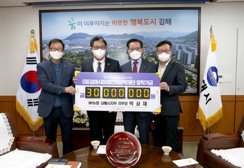 [½Åµ¿¾Æ¹æ¼Û´º½º=½Åµ¿È£±âÀÚ] ±èÇØ½Ã¹Ì·¡ÀÎÀçÀåÇÐÀç´ÜÀº 20ÀÏ NH³óÇù ±èÇØ½ÃÁöºÎ¿¡¼­ ÀåÇбâ±Ý 3000¸¸¿øÀ» ±âŹÇß´Ù°í ¹àÇû½À´Ï´Ù. NH³óÇù ±èÇØ½ÃÁöºÎ´Â Çö ÀåÇÐÀç´ÜÀÇ Àü½ÅÀÎ ±èÇØ½ÃÀÎÀçÀ°¼ºÀåÇÐÀç´Ü¿¡ 3¾ï 2000¸¸¿ø, ÀÛ³â ÃÊ Çö ÀåÇÐÀç´Ü Ãâ¹ü ÈÄ 5000¸¸¿ø°ú À̹ø¡¦