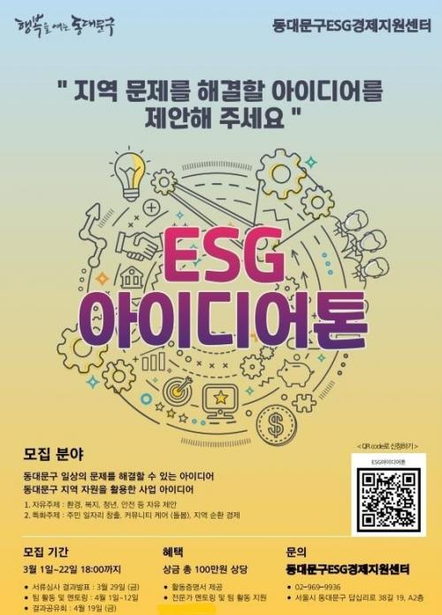 [½Åµ¿¾Æ¹æ¼Û µ¿´ë¹®=À̽ŵ¿±âÀÚ]¼­¿ï µ¿´ë¹®±¸°¡ ESG°æÁ¦Áö¿ø¼¾ÅÍ¿¡¼­ ÀÏ»óÀÇ Áö¿ª¹®Á¦¸¦ ÇØ°áÇϴ âÀÇÀûÀÎ ¾ÆÀ̵ð¾î¸¦ ¸ðÁýÇÏ´Â ¡®2024³â ESG ¾ÆÀ̵ð¾îÅæ¡¯À» °³ÃÖÇÑ´Ù. ¡®¾ÆÀ̵ð¾îÅæ¡¯À̶õ ¾ÆÀ̵ð¾î(idea)¿Í ¸¶¶óÅæ(marathon)ÀÇ ÇÕ¼º¾î·Î, Á¦ÇÑµÈ ½Ã°£ ³»¿¡ ÆÀ ´Ü¡¦