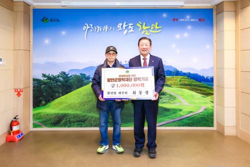 [½Åµ¿¾Æ¹æ¼Û °æ³²ÇÔ¾È=À̽ŵ¿±âÀÚ] ÇԾȱº ÇÔ¾È¸é ÆÄ¼ö¸®¿¡ °ÅÁÖÇÏ´Â ÃÖµ¿±¤ ¾¾°¡ Áö³­ 25ÀÏ ÇԾȱºÃ»À» ¹æ¹®ÇØ Áö¿ª ÀÎÀç À°¼ºÀ» À§ÇØ ÀåÇбâ±Ý 100¸¸ ¿øÀ» ÇԾȱºÀåÇÐÀç´Ü¿¡ ±âŹÇß´Ù. ÃÖµ¿±¤ ¾¾´Â 2015³â ³óÇù¿¡¼­ ÁøÇàÇÑ NH¿Ã¿øÄ«µå Ãâ½Ã ±â³ä °æÇ° Çà»ç¿¡¼­ ±Ý¡¦