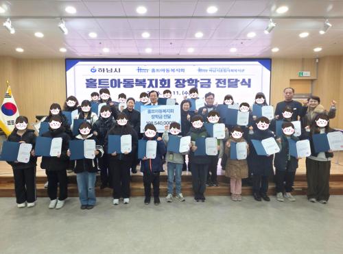 [½Åµ¿¾Æ¹æ¼Û Çϳ²½Ã=À̽ŵ¿±âÀÚ] Çϳ²½ÃÁ¾ÇÕ»çȸº¹Áö°üÀº Áö³­ 2¿ù 11ÀÏ(¼ö), º¹Áö°ü 4Ãþ °­´ç¿¡¼­ ¡°2026³â ȦƮ¾Æµ¿º¹Áöȸ ÀåÇÐ±Ý Àü´Þ½Ä¡±À» °³ÃÖÇϰí, Çϳ²½Ã ¾Æµ¿¡¤Ã»¼Ò³â 57¸í¿¡°Ô ÃÑ 1¾ï854¸¸¿øÀÇ ÀåÇбÝÀ» Áö¿øÇÑ´Ù°í ¹àÇû´Ù. À̹ø ÀåÇбÝÀº °æÁ¦Àû ¾î·Á¿ò¡¦