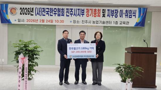 [½Åµ¿¾Æ¹æ¼Û °æ³²ÁøÁÖ=³²±Ã¿µ±â±âÀÚ] Àü±¹ÇÑ¿ìÇùȸ ºÎ»ê°æ³²Áöȸ´Â¡º2025³â ÁøÁÖÇѿ콡ºÒ±¸ÀÌÃàÁ¦¡»¿¡¼­ ¾òÀº ¼öÀͱÝÀÇ ÀϺηΠ¸¶·ÃÇÑ ÇÑ¿ìºÒ°í±â 180kg(ȯ°¡¾× 720¸¸ ¿ø »ó´ç)À» ÁøÁֽú¹ÁöÀç´Ü¿¡ ±âŹÇß´Ù. À̹ø¿¡ Àü´ÞµÈ ÇÑ¿ìºÒ°í±â´Â¡®´ëÇѹα¹ÀÌ ÇÑ¿ì ¸Ô´Â ³¯¡¯¡¦