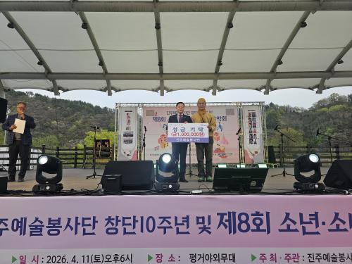 [½Åµ¿¾Æ¹æ¼Û °æ³²ÁøÁÖ=³²±Ã¿µ±â±âÀÚ]ÁøÁÖ¿¹¼úºÀ»ç´ÜÀº Áö³­ 11ÀÏ, Æò°Å¾ß¿Ü¹«´ë¿¡¼­ ½Ã¹Î°ú ÇÔ²²ÇÏ´Â ¡®¼Ò³â¼Ò³à°¡Àåµ½±â À½¾Çȸ¡¯Çà»ç¸¦ °³ÃÖÇÏ°í ¾î·Á¿î ÀÌ¿ôµ½±â ¼º±Ý 100¸¸ ¿øÀ» ÁøÁֽú¹ÁöÀç´Ü¿¡ ±âŹÇß´Ù. ÁøÁÖ¿¹¼úºÀ»ç´ÜÀº °ü³» º¹Áö½Ã¼³ µî ¼Ò¿Ü°èÃþÀ» ´ë»óÀ¸¡¦